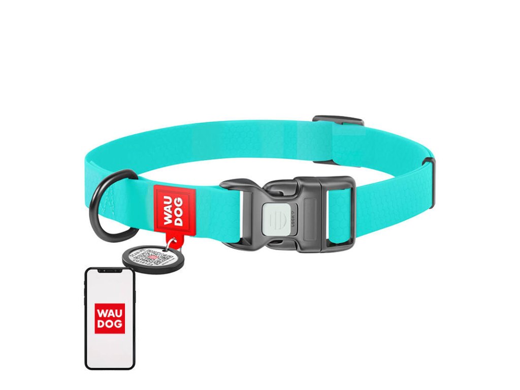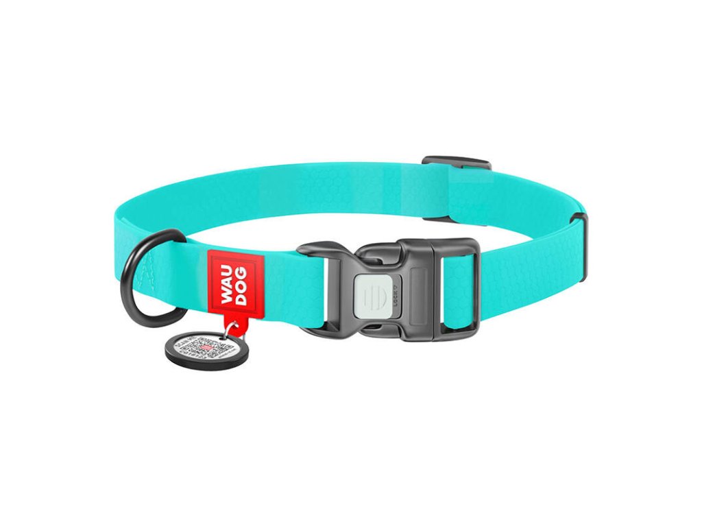 Voděodolný svítící obojek pro psy s QR páskou WAUDOG o šířce 40 mm a délce 46-70 cm.