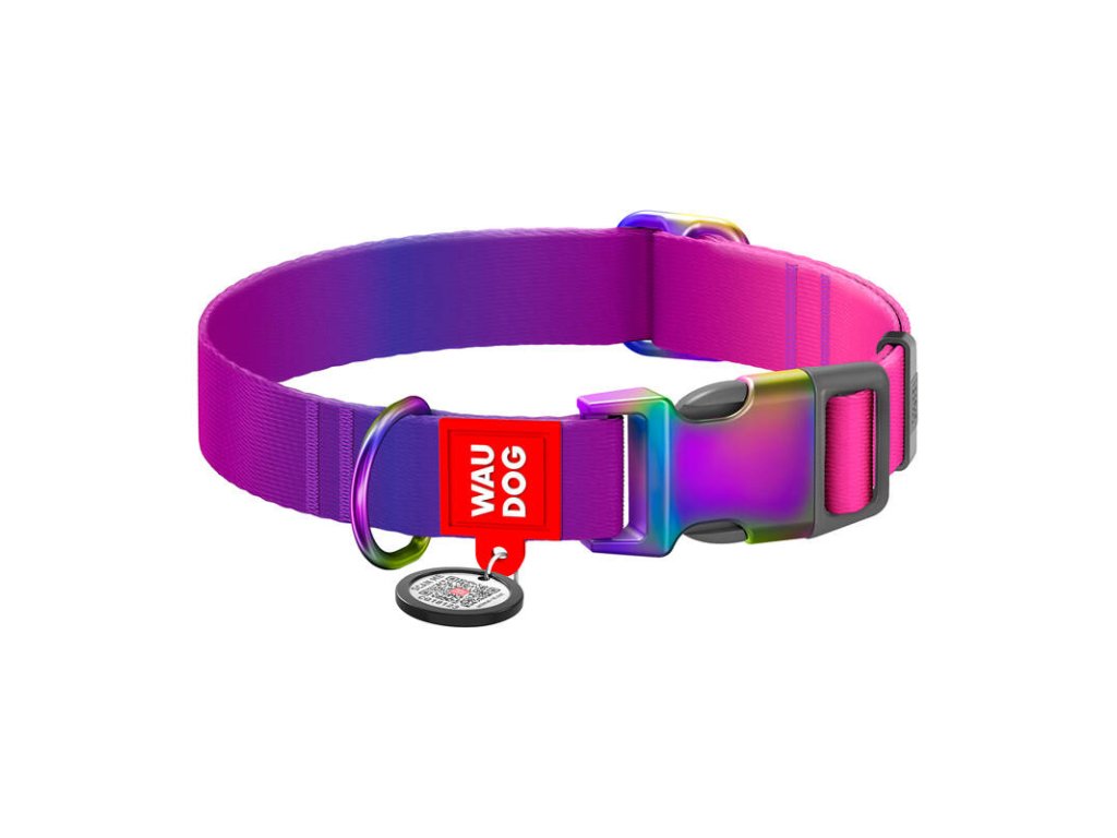 Nylonový obojek s QR kódem pro psa Waudog gradient velikosti L (fialový).